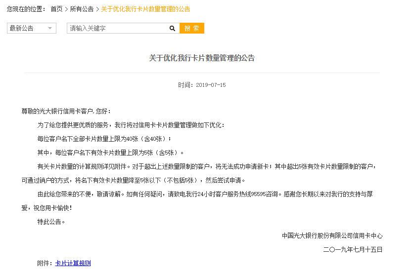 在有效卡片的计算细则上,光大信用卡做出了如下规定: